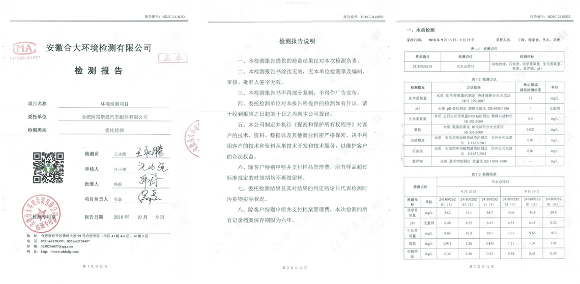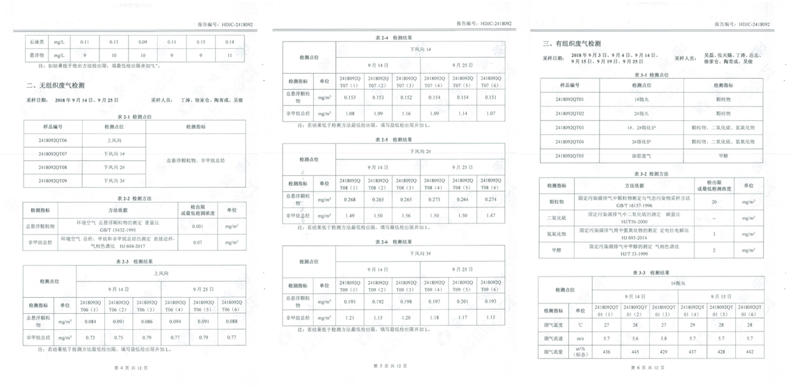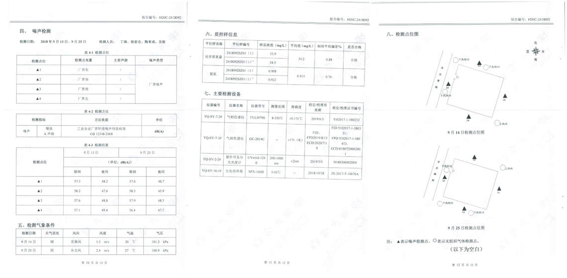 根據安徽合大環(huán)境檢測有限公司提供的監(jiān)測報告HDJC-2418092顯示,廢水、廢氣、噪聲監(jiān)測全部合格。