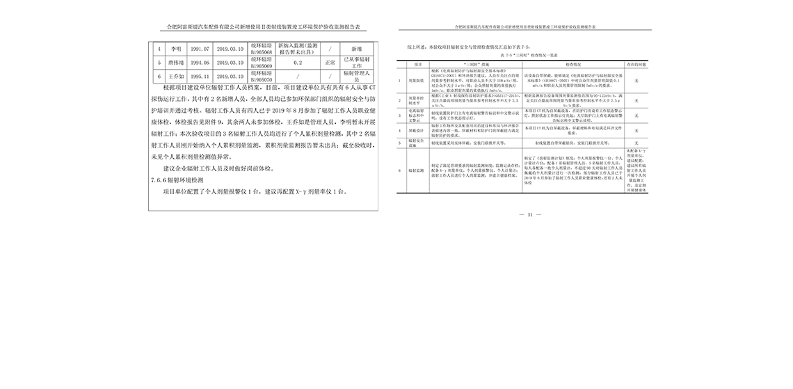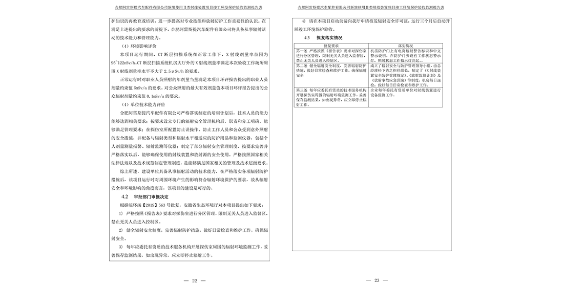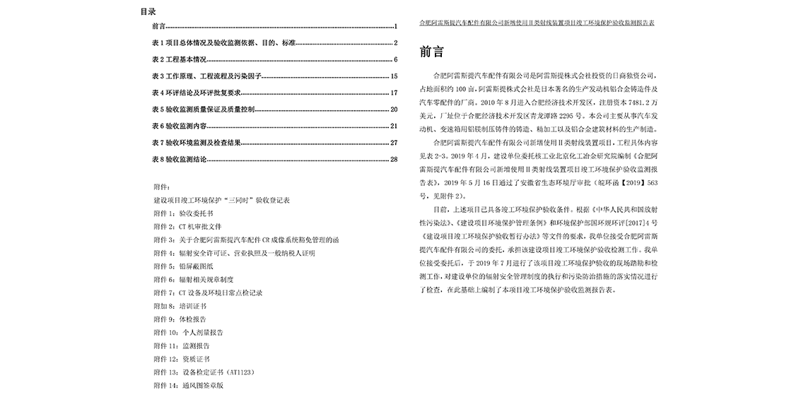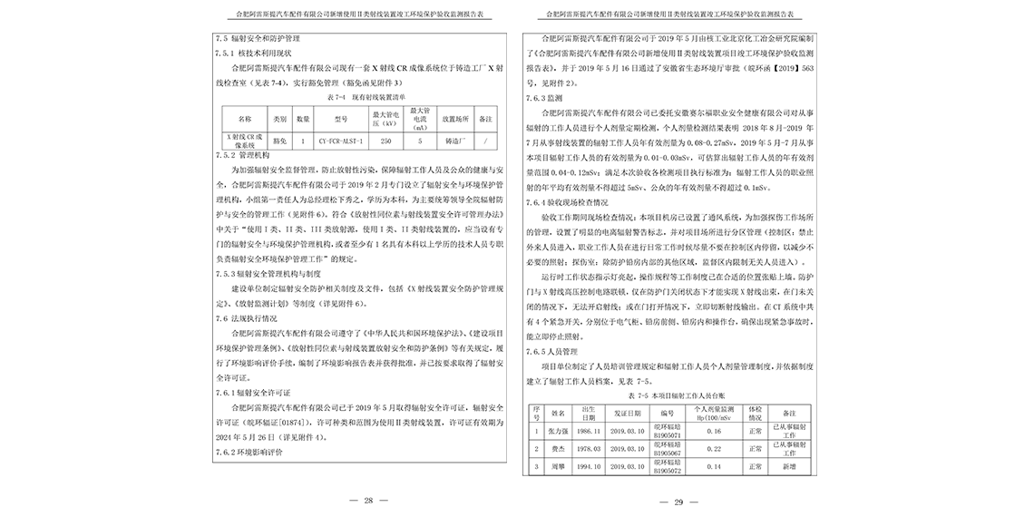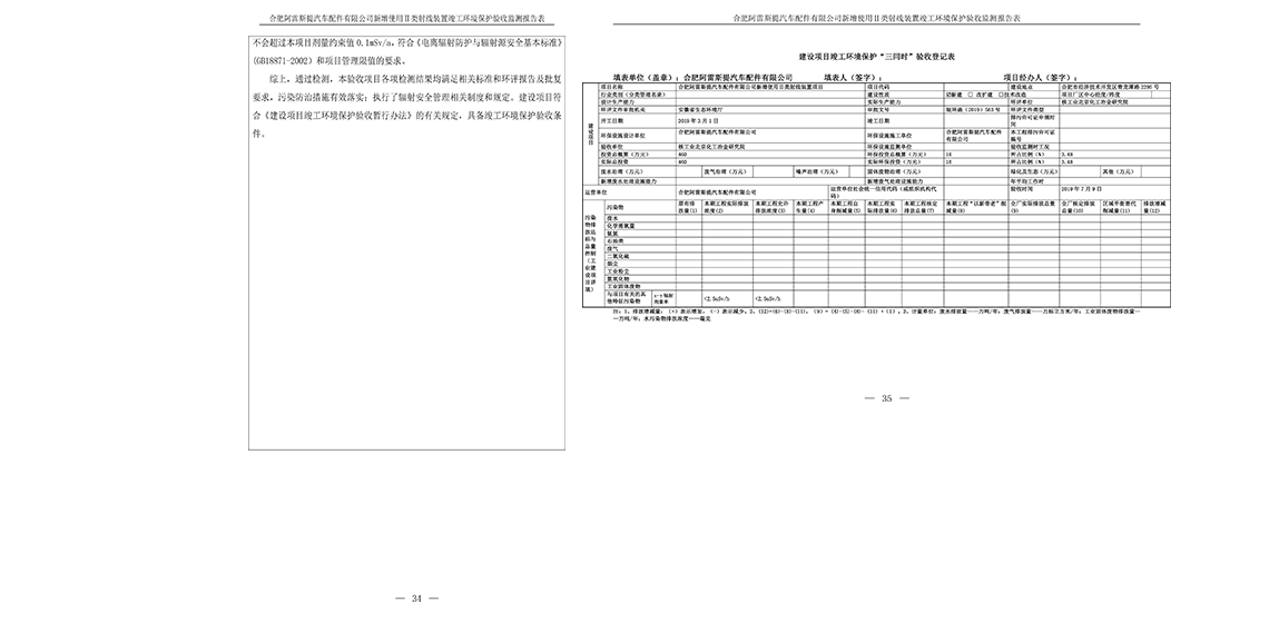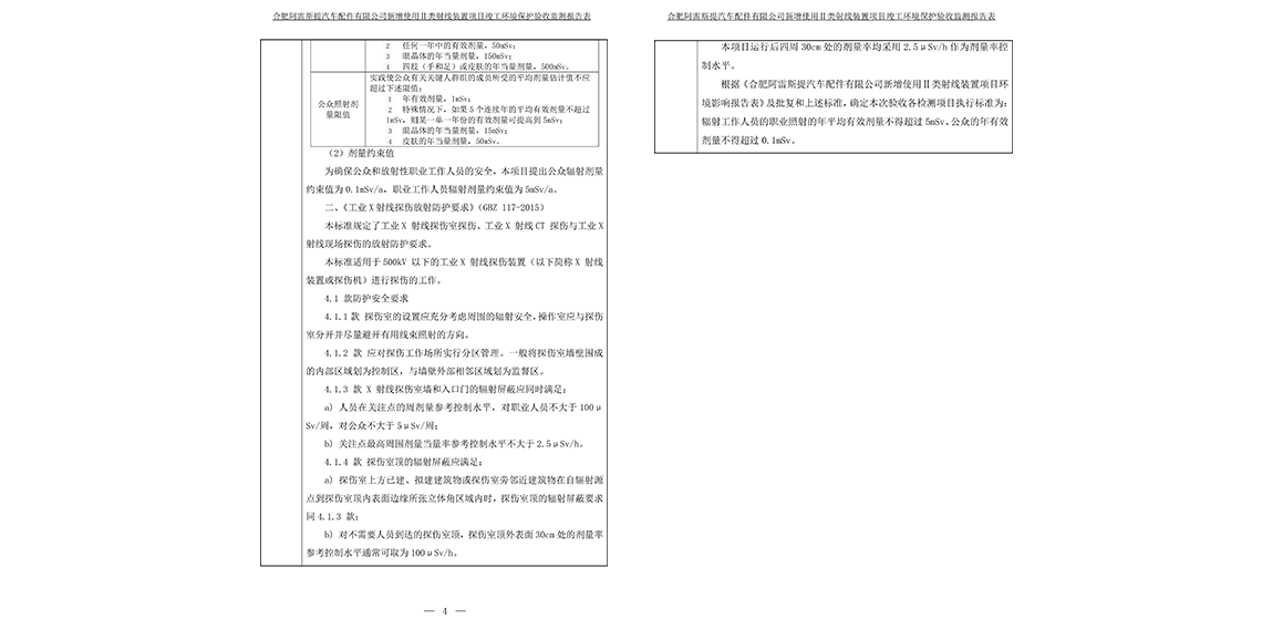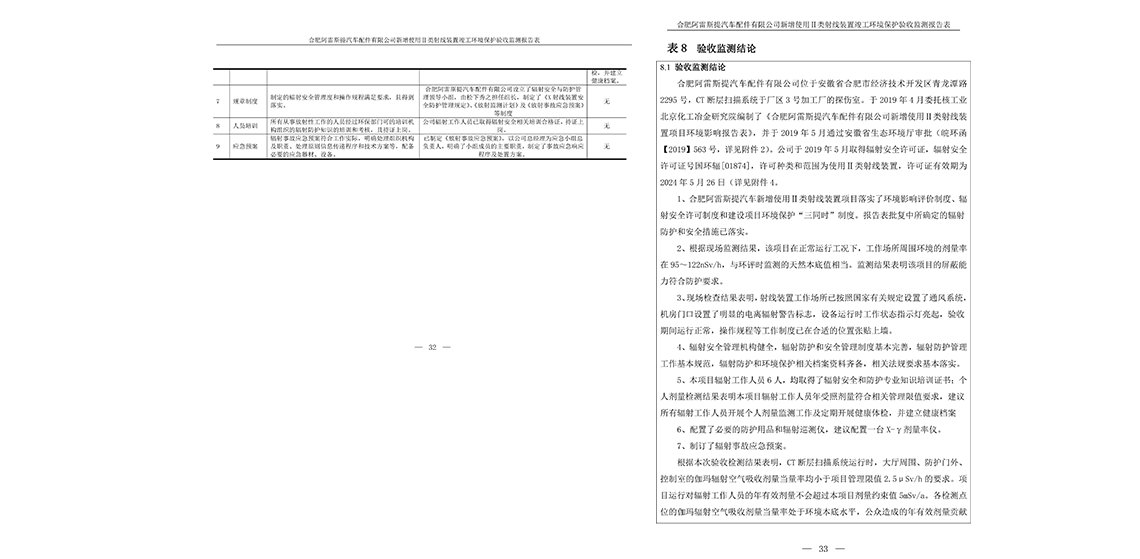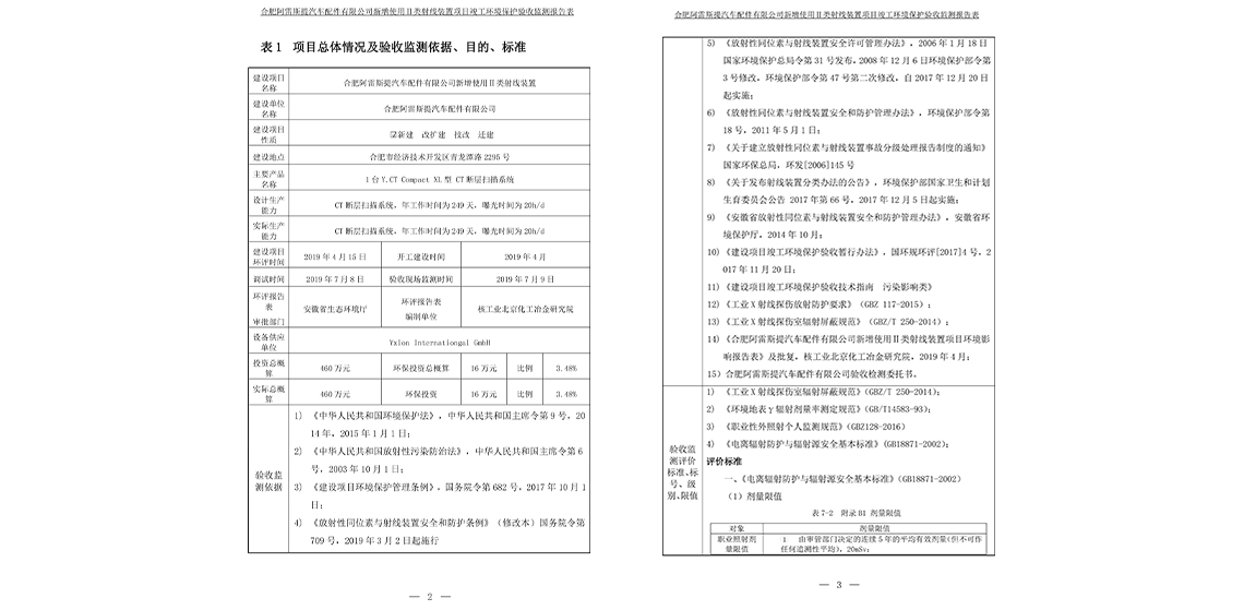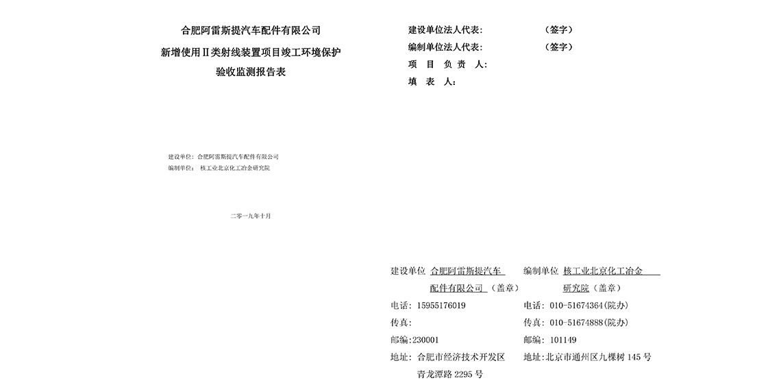 合肥阿雷斯提汽車配件有限公司新增使用ii類射線裝置項(xiàng)目驗(yàn)收?qǐng)?bào)告表