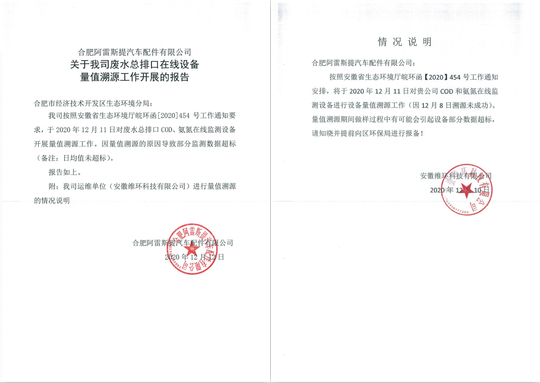 關(guān)于我公司廢水總排口在線設(shè)備量值溯源工作開展的報告