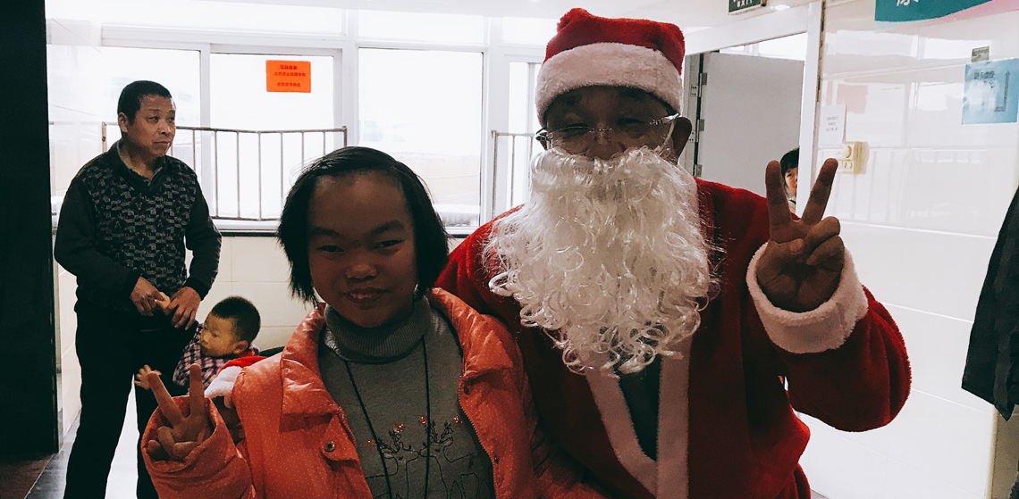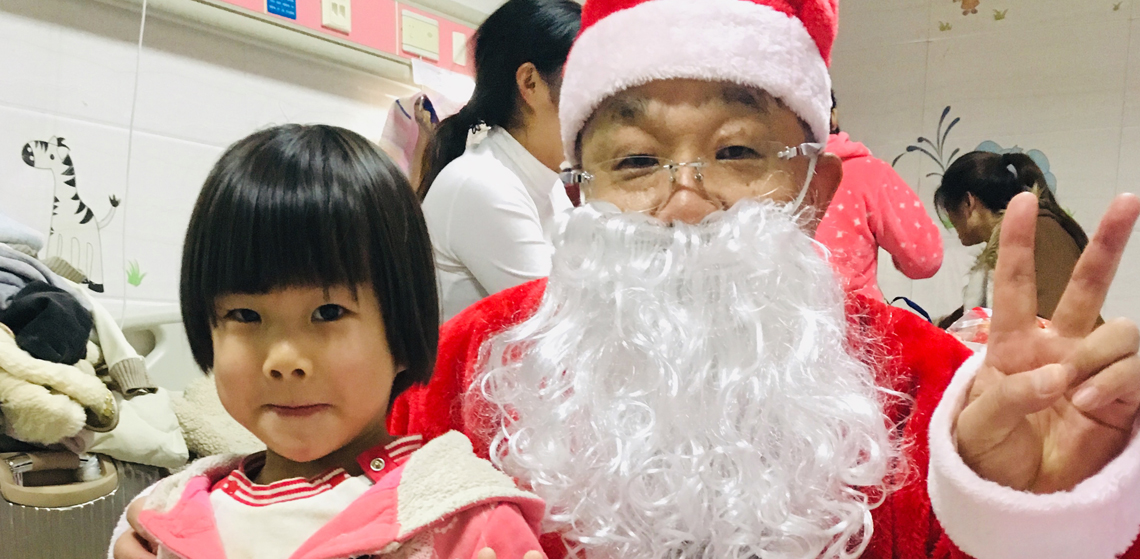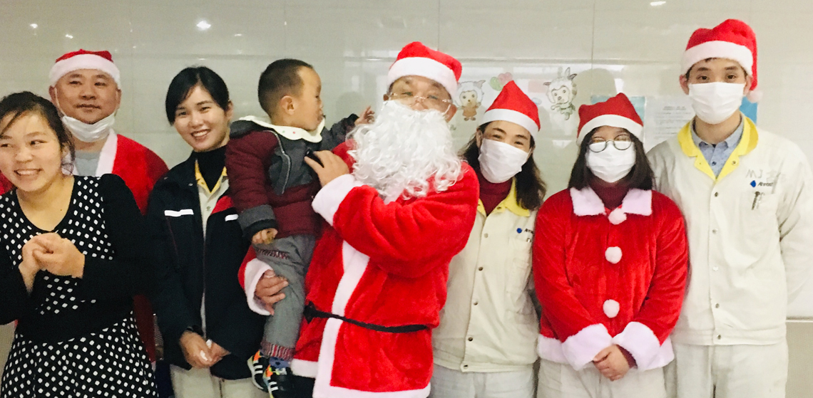12月19日下午,松下總經(jīng)理與工會(huì)、黨支部等成員風(fēng)雨無(wú)阻來(lái)到兒童醫(yī)院,松下總經(jīng)理裝扮成圣誕老人給小朋友們