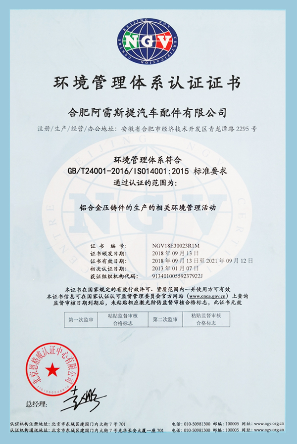 環(huán)境管理體系認(rèn)證證書中文版