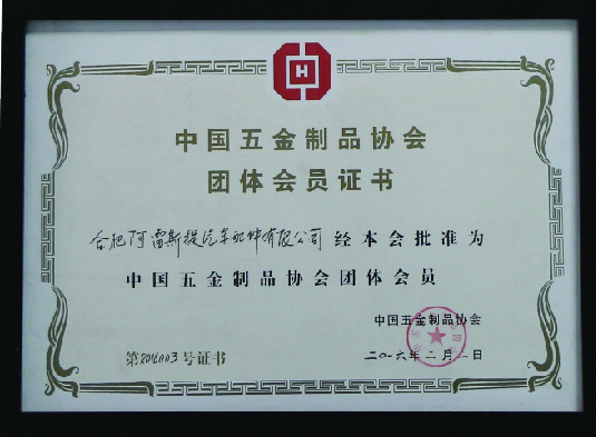 中國(guó)五金制品協(xié)會(huì)團(tuán)體會(huì)員證書