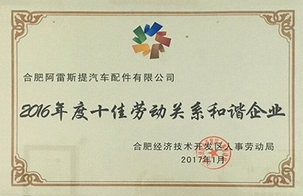 2016年度十佳勞動(dòng)關(guān)系和諧企業(yè)